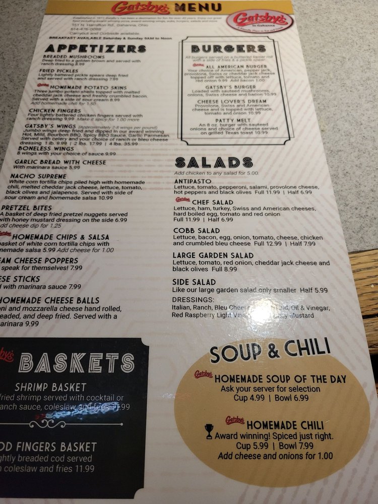 Introducing Gatsby’s, a charming pizza spot located at 151 N Hamilton Rd in Gahanna, OH, perfect for any casual dining experience. Known for its vibrant atmosphere and welcoming locals, Gatsby’s excels in serving delicious American-style pizzas. With menu highlights including the Buckeye's Favorite pizza and decadent sides like sweet potato fries, every bite promises satisfaction.